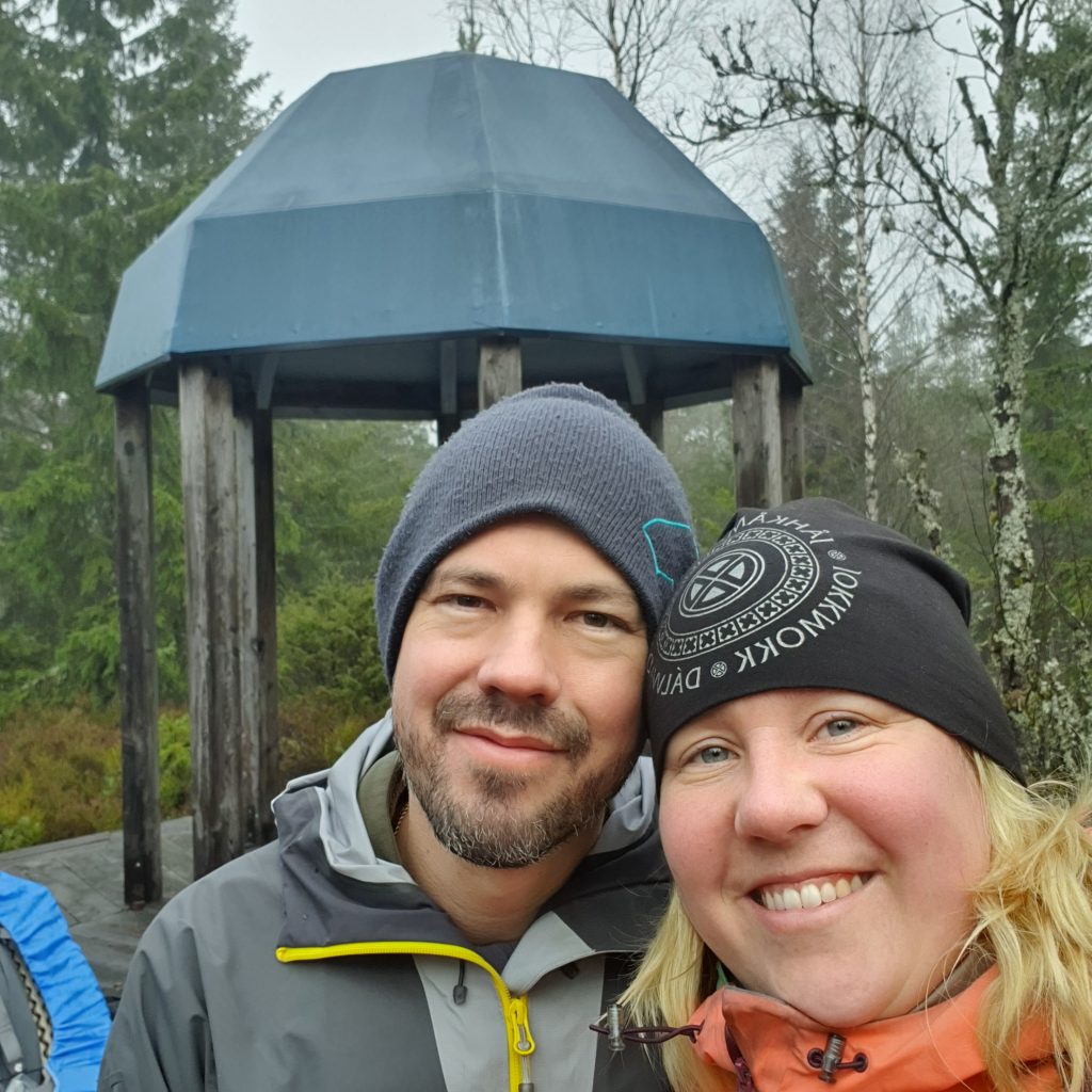 När vi vaknat och packat ihop började vi den korta vandringen till toppen och möttes av en fin plats med konstverk och iordninggjorda sittplatser. Tyvärr hade vi inte vädret på vår sida men det blev ändå ett minne för livet!